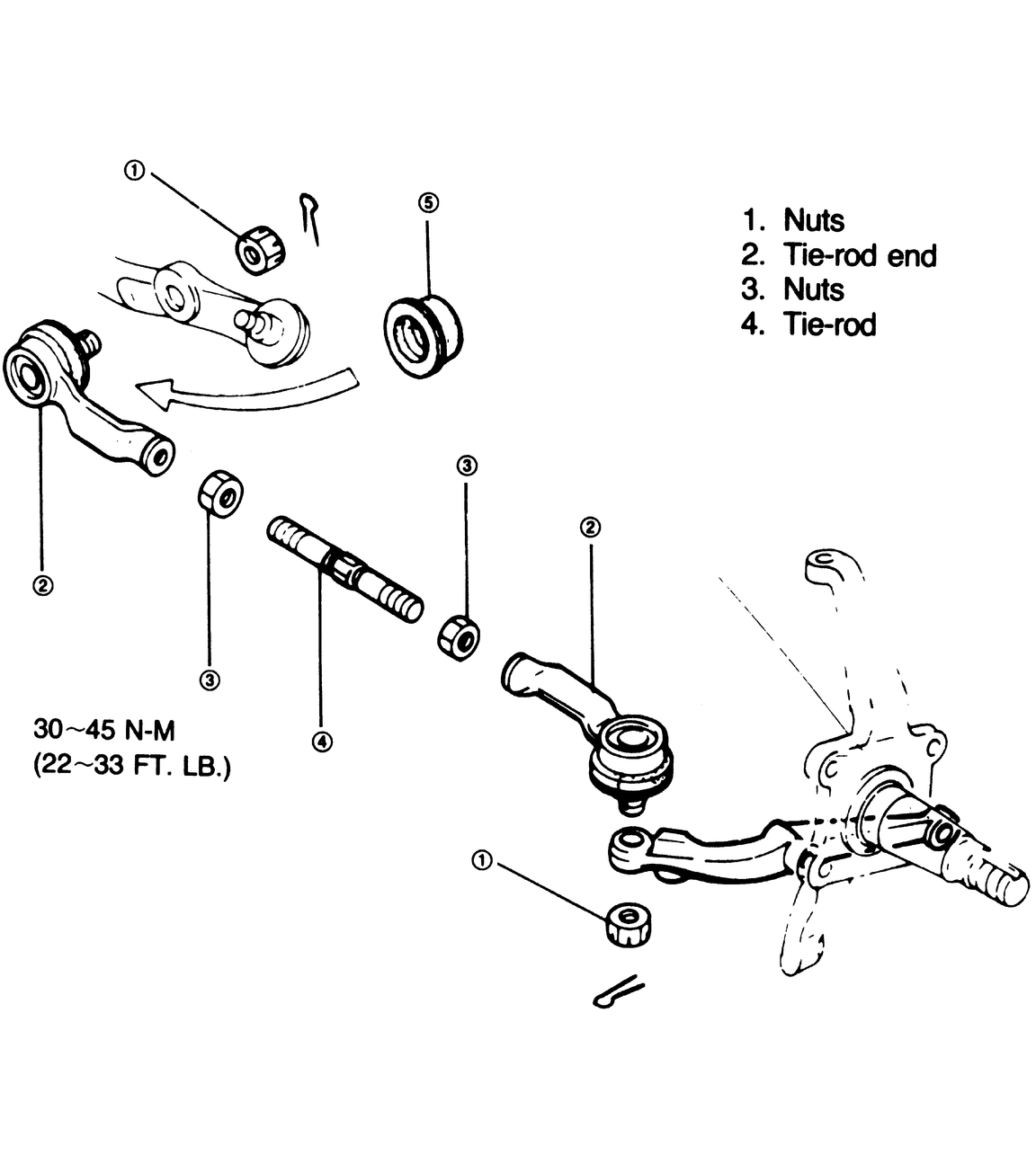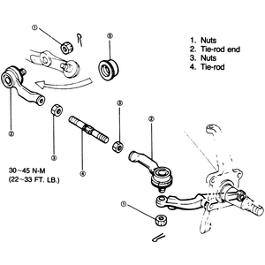 | Fig. 9: Exploded view of the 1982–84 tie rod attachment points |