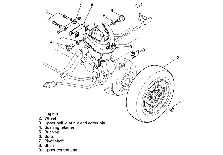 Remove the wheels. Support the lower arm with a floor jack.