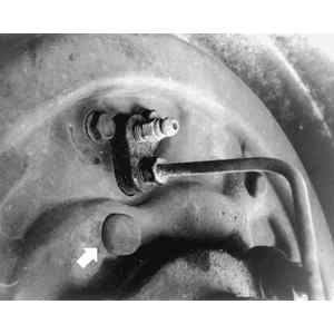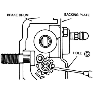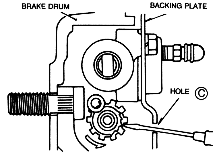 | Fig. 2: Activating the adjusting mechanism on 1979 and later rear brakes |