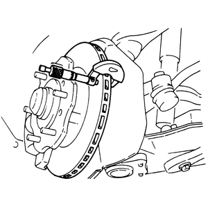 | Fig. 1: Use a dial indicator to check disc run-out