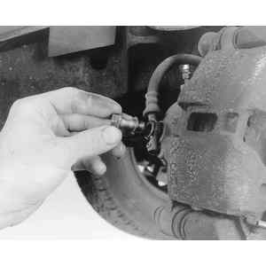 | Fig. 2: To remove the flexible rubber brake hoses, loosen