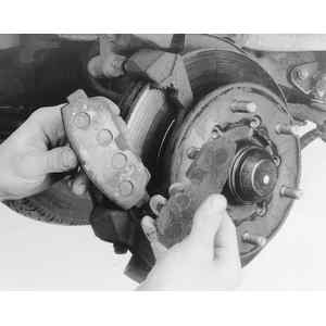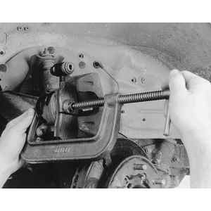 pads, place a large C-clamp over the caliper as shown, and tighten the