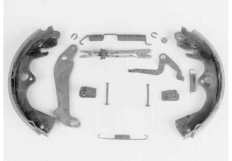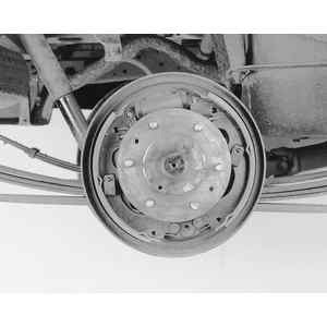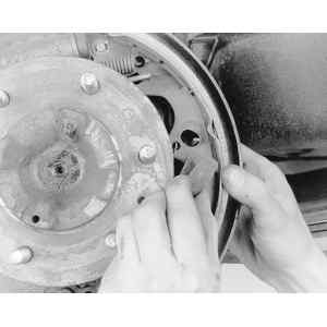 | Fig. 3: To replace the rear brake shoes, start by cleaning
