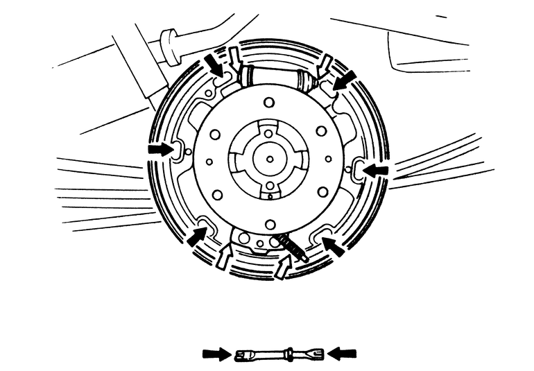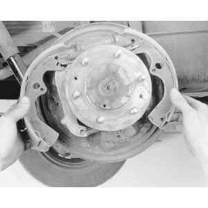 | Fig. 6: Grasp the brake shoes and spread them apart until