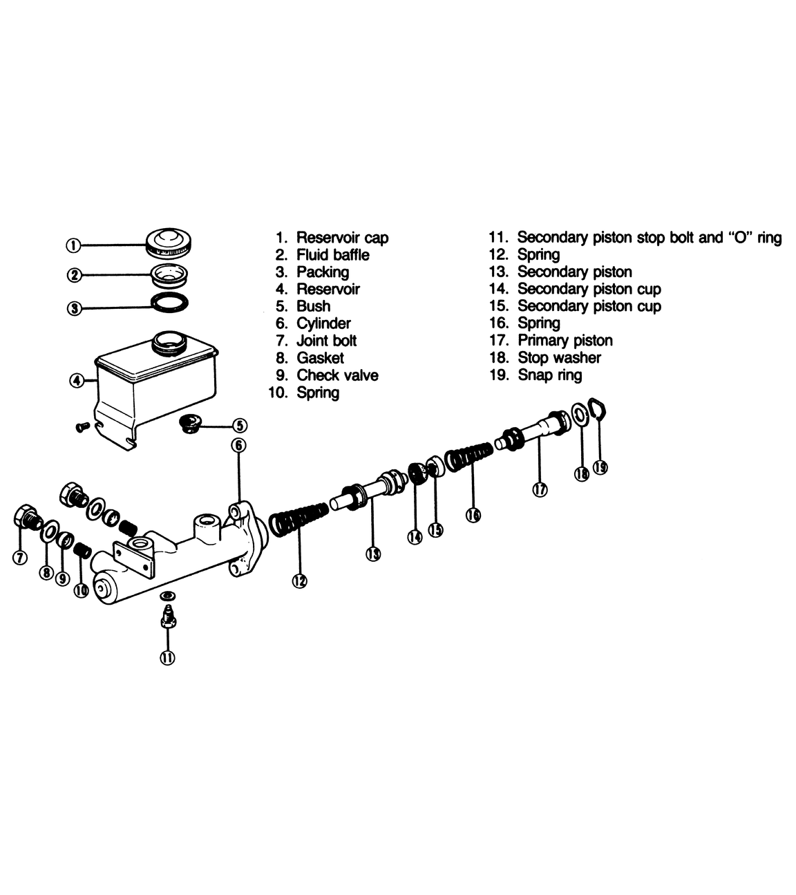 | Fig. 4: Exploded view of the 1976 master cylinder |