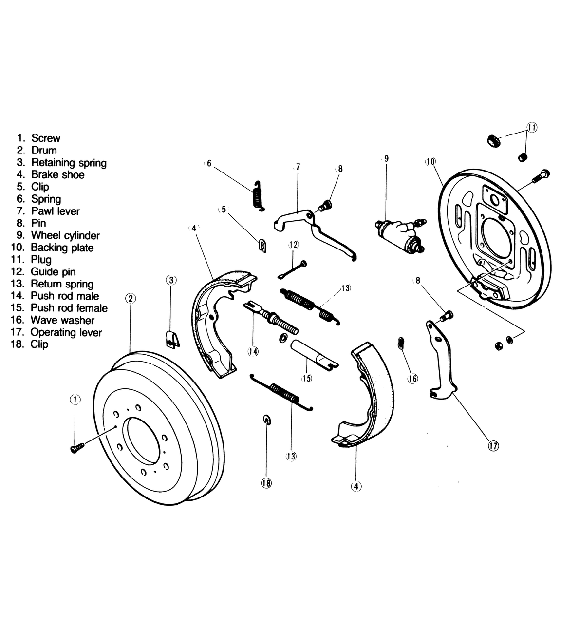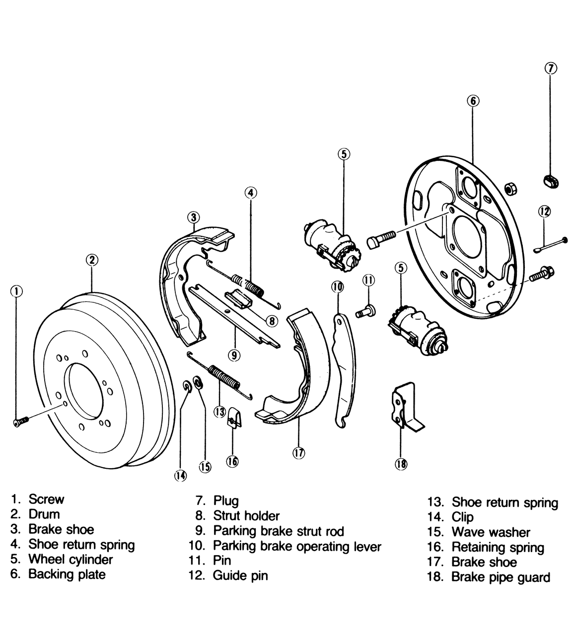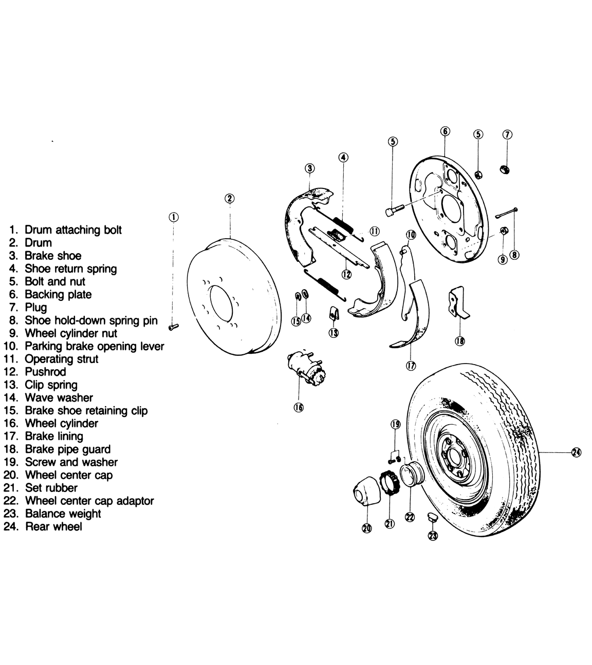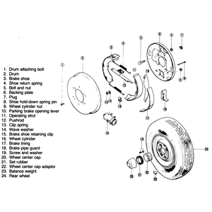 | Fig. 3: Exploded view of the 1977–78 rear brake components |