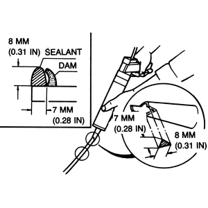 - Cut the nozzle of the sealer tube as illustrated, so that it will run along