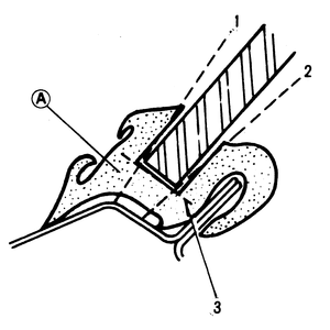 | Fig. 10: Trimming the seal after the windshield is removed