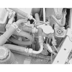 - Adjust the power steering belt tension/deflection by turning the adjusting