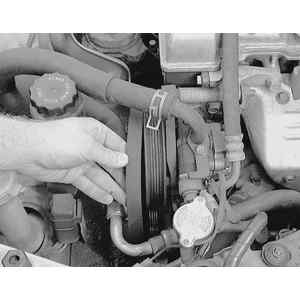 - Remove the belt from each of the pulleys, remove from the vehicle and inspect