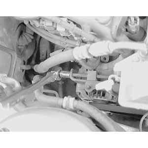 - Adjust the alternator belt tension/deflection by turning the adjusting bolt.