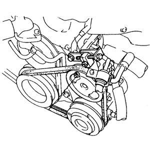 | Fig. 2: Typical power steering and A/C compressor mounting