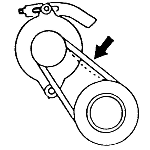 - If the belt tension is not as specified in Step 1, loosen the alternator