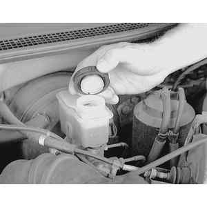 If it is necessary to add fluid, first wipe away any accumulated dirt or grease from the reservoir. Then remove the reservoir cap by twisting counterclockwise. Add fluid to the proper level. Avoid spilling fluid on any painted surface as it will harm the paint finish. Replace the reservoir cap.