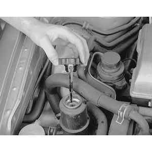| Fig. 2: Read the fluid level on the dipstick. It