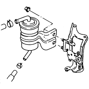 - Remove the nut from the fuel filter bracket, and remove the filter and bracket