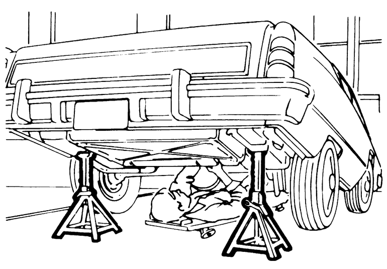| Fig. 4: NEVER work under a vehicle unless it is supported using safety stands (jackstands) |