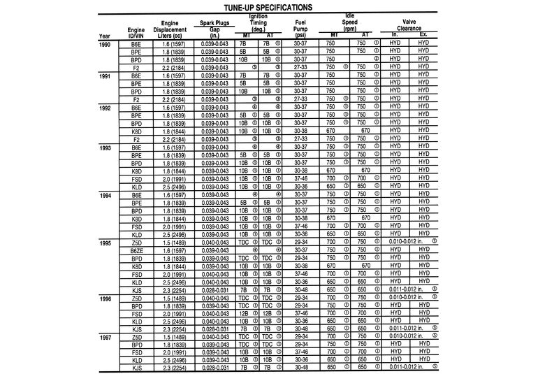 TUNE-UP SPECIFICATIONS