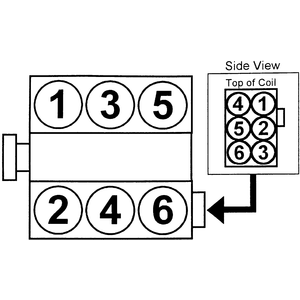 | Fig. 6: 2.3L Engine Firing order: 1–2–3–4–5–6