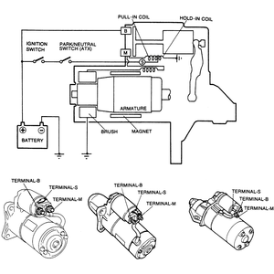 Conventional starters use four individually wound magnets to produce a strong magnetic field. This field induces the armature to turn against these field. In addition to the magnetic field turning the armature, it also pulls down a lever, which in turn throws out the starter drive to engage into the flywheel teeth.