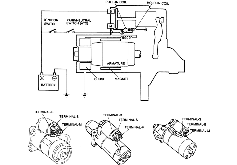 | Fig. 1: Example of the various starter configurations and basic electrical system schematic |
