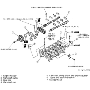 - Tighten the camshaft cap bolts in 5–6 steps to 126 inch lbs. (14 Nm),