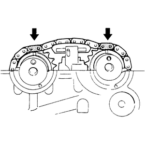 - Remove the camshafts. Remove the chain and oil seals from the camshafts.