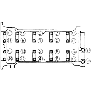 | Fig. 6: Camshaft cap bolts tightening sequence for