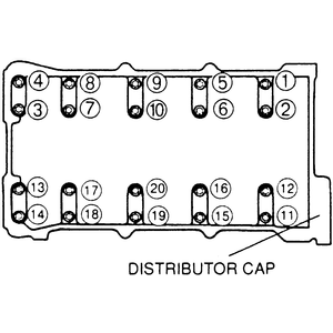 - Install the cylinder head cover. Tighten the bolts in 2 steps, in reverse