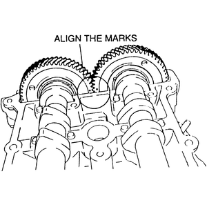 directly on the tappets. Align the marks on the camshaft gear and the timing