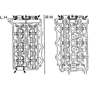 - Apply silicone sealant to the cylinder head on the front camshaft caps mating