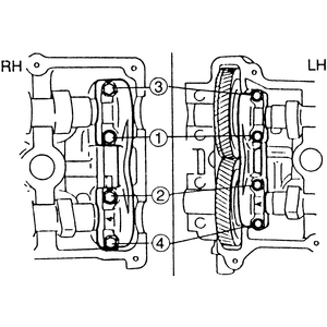 | Fig. 3: Camshaft cap bolts loosening sequence for
