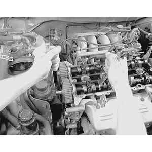 sprocket mounting bolt. Remove the camshaft sprockets.