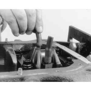 If not done during the cylinder head removal, remove the timing chain/belt and/or gear/sprocket assembly. Remove the oil pick-up and pump assembly and, if necessary, the pump drive. If equipped, remove any balance or auxiliary shafts. If necessary, remove the cylinder ridge from the top of the bore. See the cylinder ridge removal procedure earlier in this section.