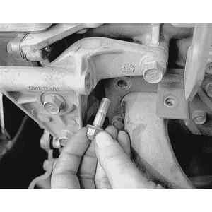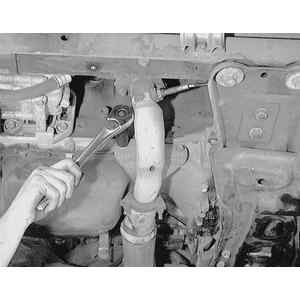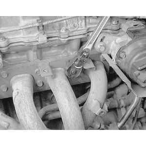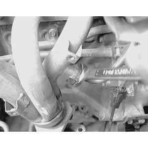 the vehicle and loosen the exhaust pipe-to-engine block support bracket