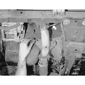 | Fig. 6: Lower the vehicle and remove the exhaust