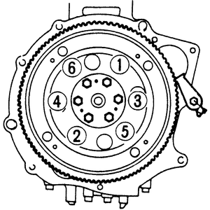 Fig. 1: Flywheel bolt tightening sequence for 6-bolt flywheels