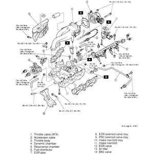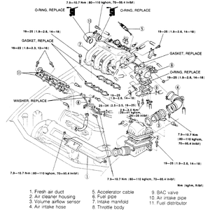 - Install the air cleaner assembly and ducts. On MX-3, install the upper strut