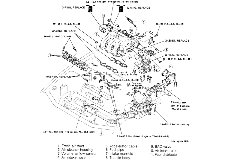 - Remove the intake manifold-to-cylinder head bolts/nuts and remove the intake