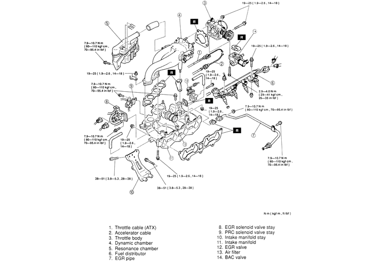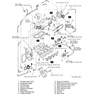- Install the throttle body. Tighten the nuts and bolts to 14–18 ft.