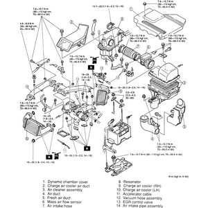 ducts, air cleaner assembly, mass air flow sensor and resonance chamber.