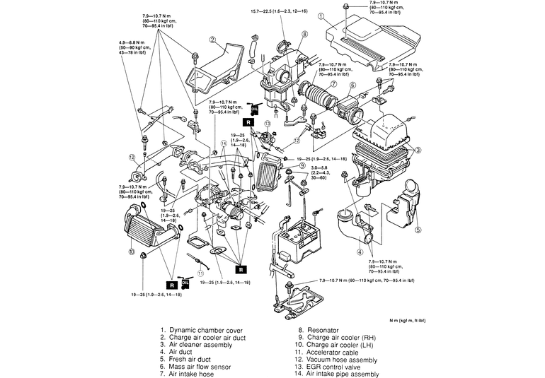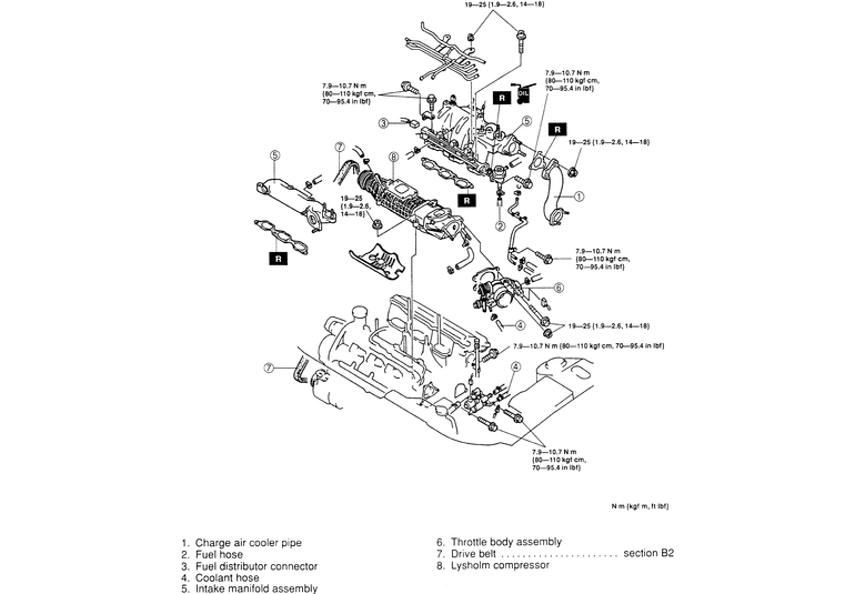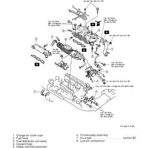 air intake pipes and charge air coolers contact the intake manifold. Verify