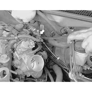 - Connect the coolant hose to the air bypass valve. Connect the fuel lines.