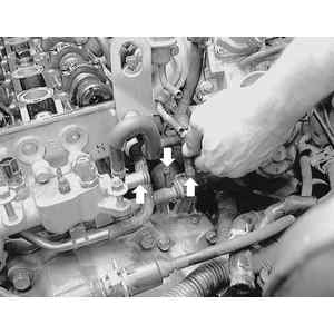 | Fig. 3: Next, disconnect the fuel lines (arrows),