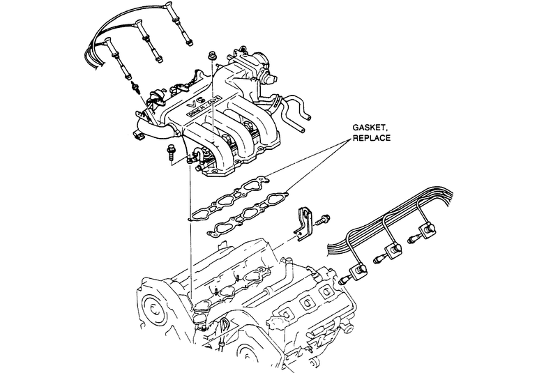 | Fig. 15: To remove the valve cover on V6 engines, detach the spark plug wires from the plugs, and if necessary, remove the intake manifold |