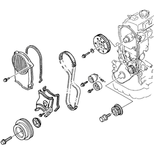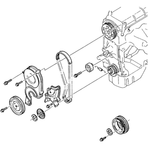 | Fig. 4: Exploded view of the timing belt cover for the 2.0L engine |