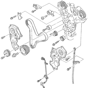 | Fig. 9: Exploded view of the 2.2L engines timing belt cover assembly |