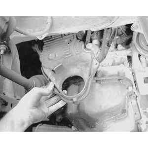 | Fig. 7: Next, raise the vehicle, remove the crankshaft