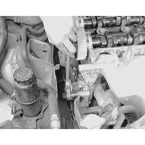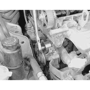 | Fig. 5: Remove the engine timing belt . . .