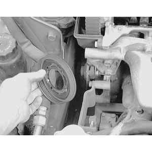 cooling system, then loosen the water pump pulley attaching bolts